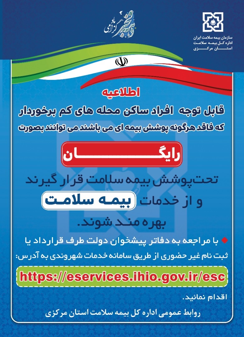 طرح بیمه نمودن افراد فاقد پوشش بیمه ای در محله های کم برخوردار ۰۳ اسفند ۱۴۰۰ | ۱۲:۴۸ کد : ۲۴۱۷۷ اطلاعیه ارسال به دیگران نام شما ایمیل شما ایمیل دریافتکننده ارسال انصراف تعداد بازدید:۲۶۱۴۰