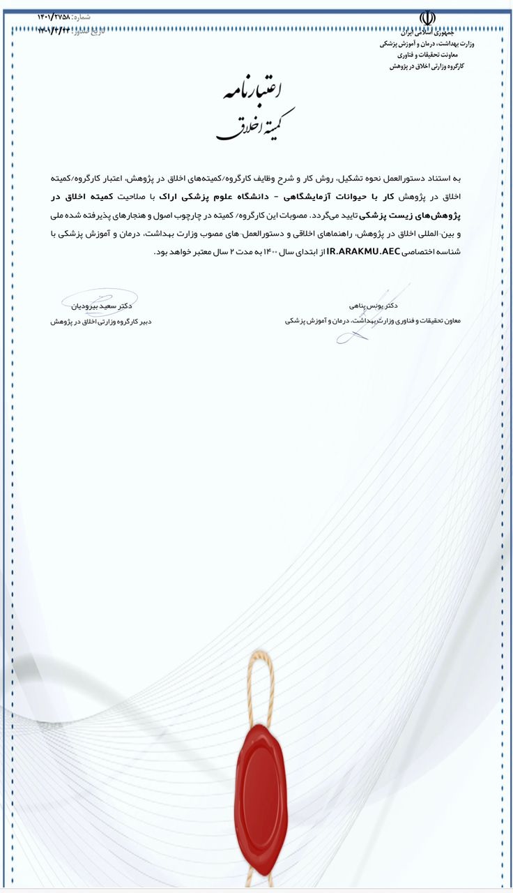 اخذ اعتبار نامه کمیته اخلاق در پژوهش کار با حیوانات آزمایشگاهی برای دانشگاه علوم پزشکی اراک ۰۱ تیر ۱۴۰۱ | ۰۷:۲۲ کد : ۲۷۲۴۶ اطلاعیه ارسال به دیگران نام شما ایمیل شما ایمیل دریافتکننده ارسال انصراف تعداد بازدید:۱۸۲۴۶