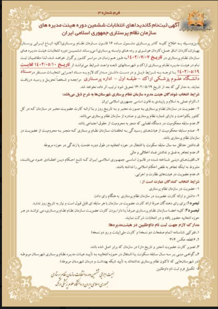 اطلاعیه ثبت نام کاندیداهای انتخابات ششمین دوره هیئت مدیره های سازمان نظام پرستاری ۰۷ مرداد ۱۴۰۲ | ۰۹:۲۲ کد : ۳۶۲۶۴ اطلاعیه ارسال به دیگران نام شما ایمیل شما ایمیل دریافتکننده ارسال انصراف تعداد بازدید:۱۶۹۱۹
