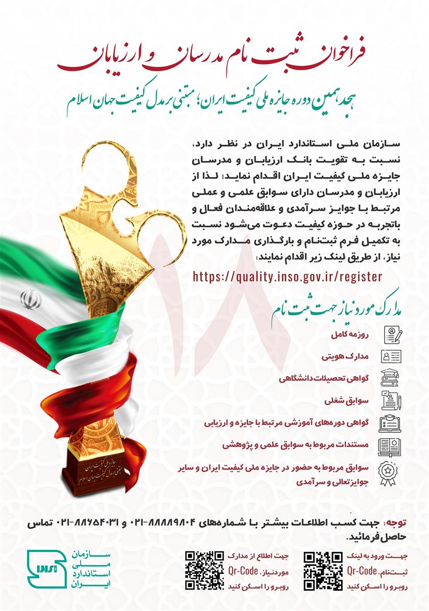 فراخوان ثبت نام مدرسان و ارزیابان هجدهمین دوره جایزه ملی کیفیت ایران