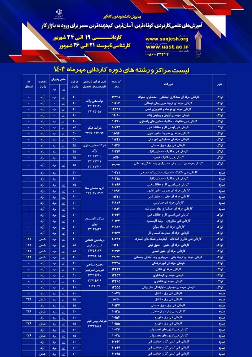 کلیدواژه‌ها: پذیرش کاردانی دانشگاه جامع علمی کاربردی دانشگاه علوم پزشکی اراک تمدید ثبت نام کاردانی ناپیوسته