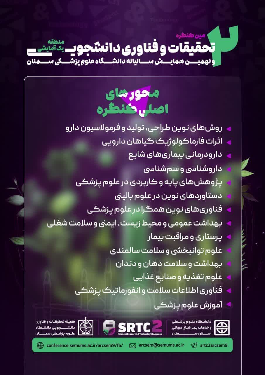 دومین کنگره تحقیقات و فناوری دانشجویی منطقه یک آمایشی و نهمین همایش سالیانه دانشگاه علوم پزشکی سمنان