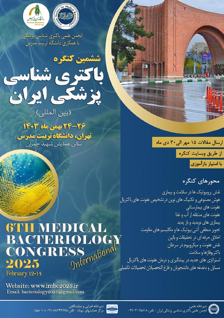 انجمن علمی باکتری شناسی پزشکی، ششمین کنگره باکتری شناسی پزشکی ایران را ۲۴ الی ۲۶ بهمن ماه سال جاری برگزار می نماید.
