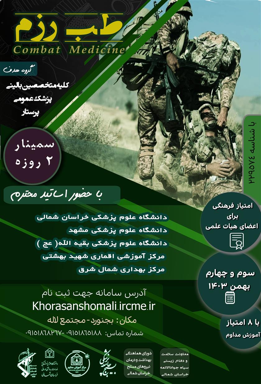 لینک ثبت نام سینار طب رزم: https://khorasanshomali.ircme.ir