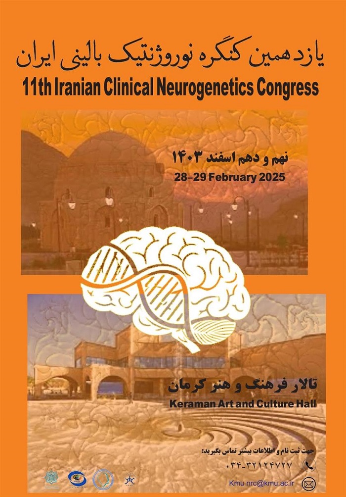 یازدهمین کنگره نوروژنتیک در تاریخ ۹ و ۱۰ اسفند ۱۴۰۳ در دانشگاه علوم پزشکی کرمان برگزار می شود.