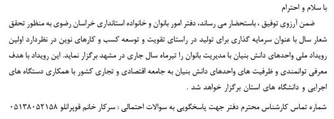 کلیدواژه‌ها: مشهد رویداد ملی بانوان مدیریت بانوان دانش بنیان